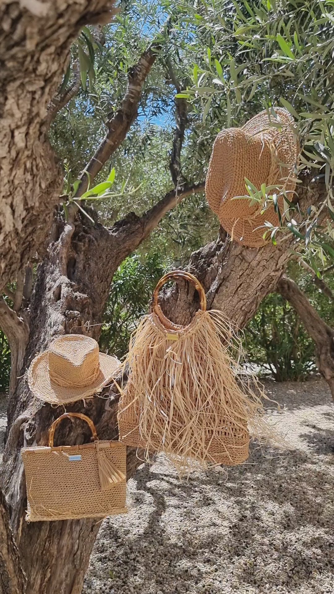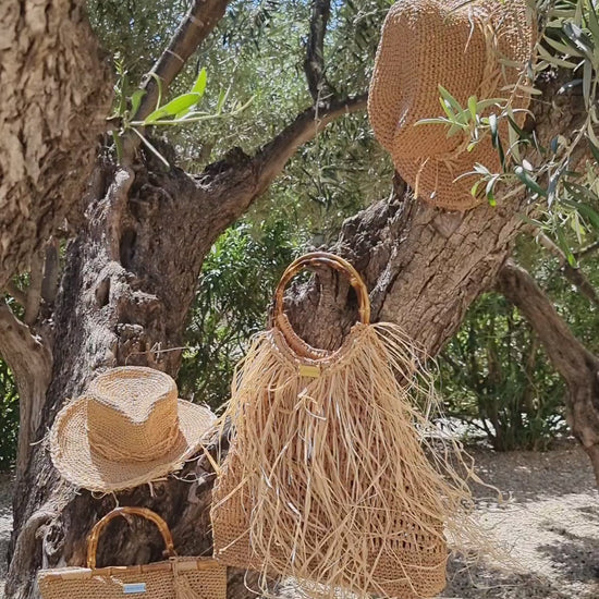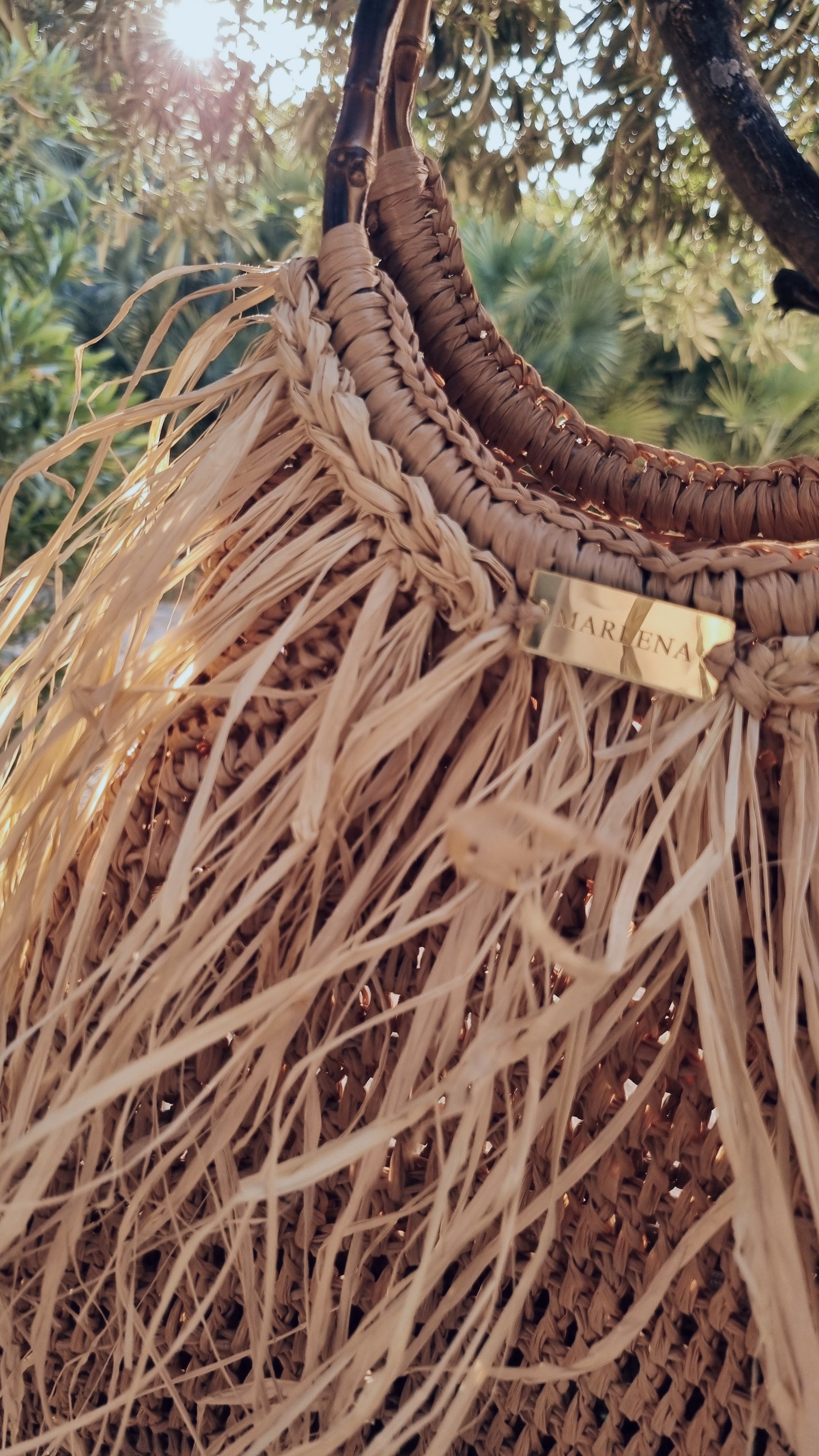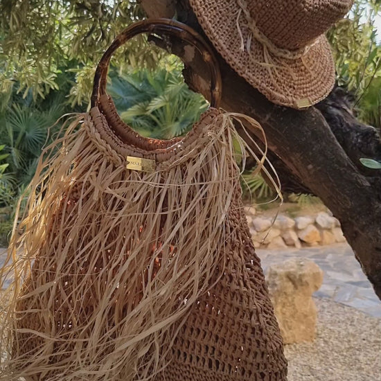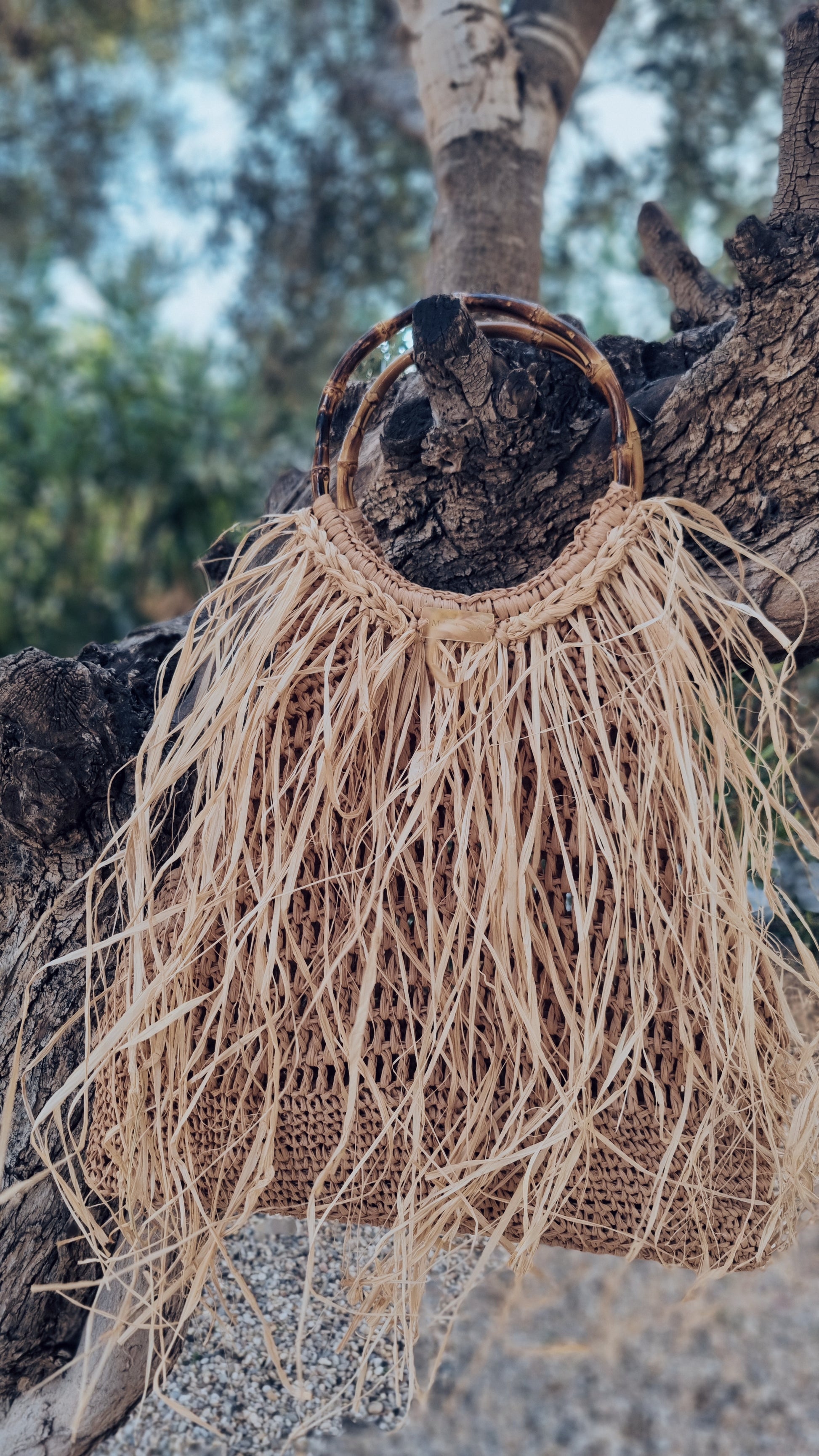 Handwoven raffia bag with bamboo handles. Lightweight summer tote, natural and elegant. Perfect for beach, travel and everyday wear.